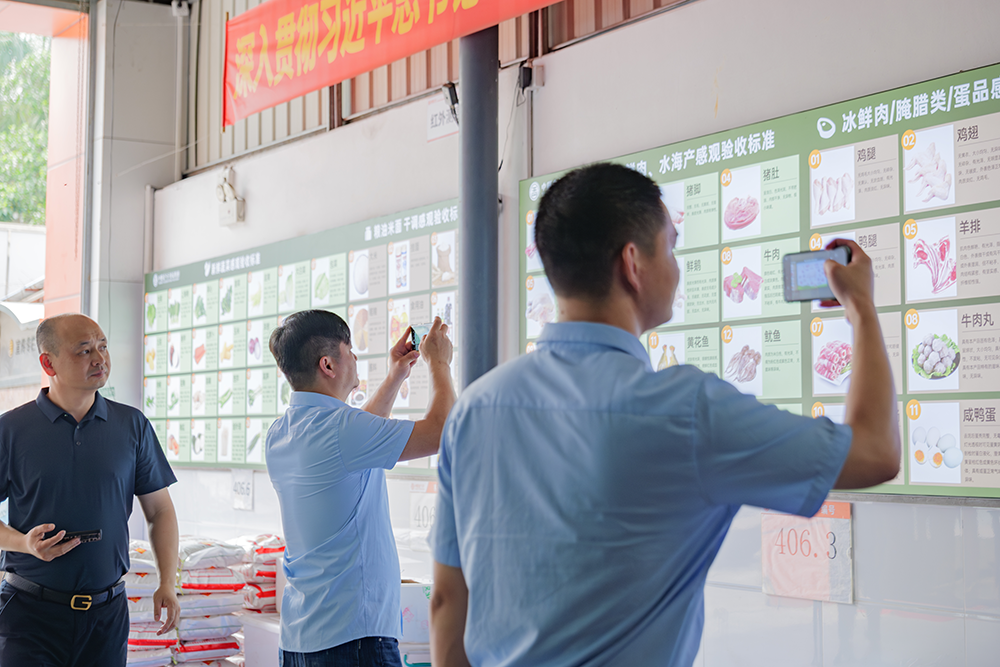 研學團一行在我司相關人員陪同下先后參觀了餐飲項目、預制菜生產車間、食材配送大廳、食品安全檢測中心等。