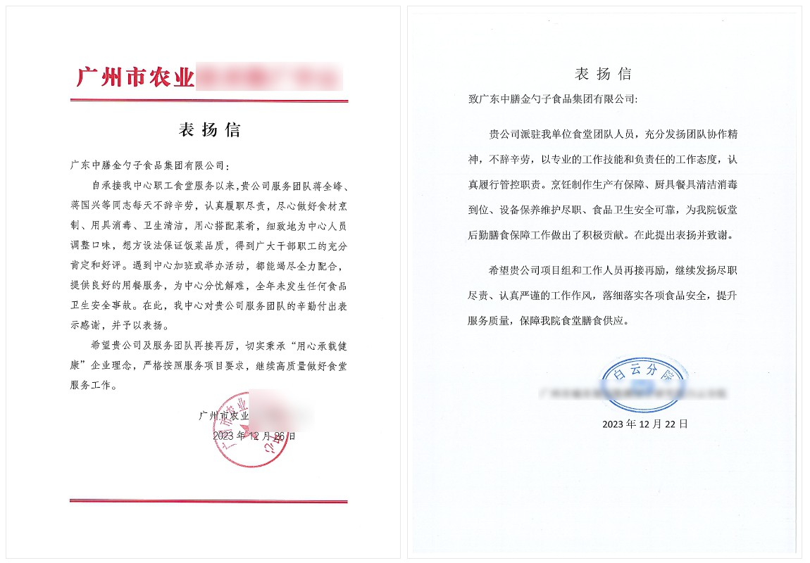8月,金勺子團(tuán)餐704門店整體服務(wù)及食品安全管理水平較高,先后被廣東省食品藥品監(jiān)督管理局和廣州市市場(chǎng)監(jiān)督管理局授予“食品安全A級(jí)”榮譽(yù)。