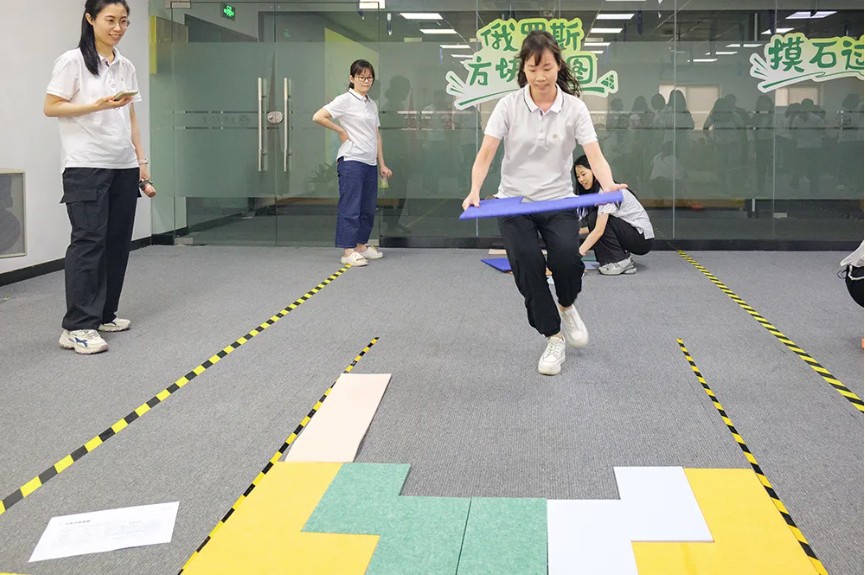《摸石頭過河》游戲則是一場趣味橫生的競賽。員工們共同跨越障礙,到達終點,感受到了團隊協作的重要性。