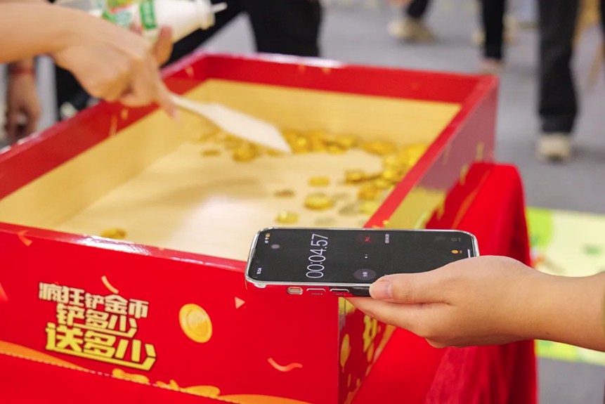 《鏟金幣》游戲則是新時代的游戲與傳統文化的完美結合。大家奮力鏟起地上的金幣,感受著金燦燦的喜悅。
