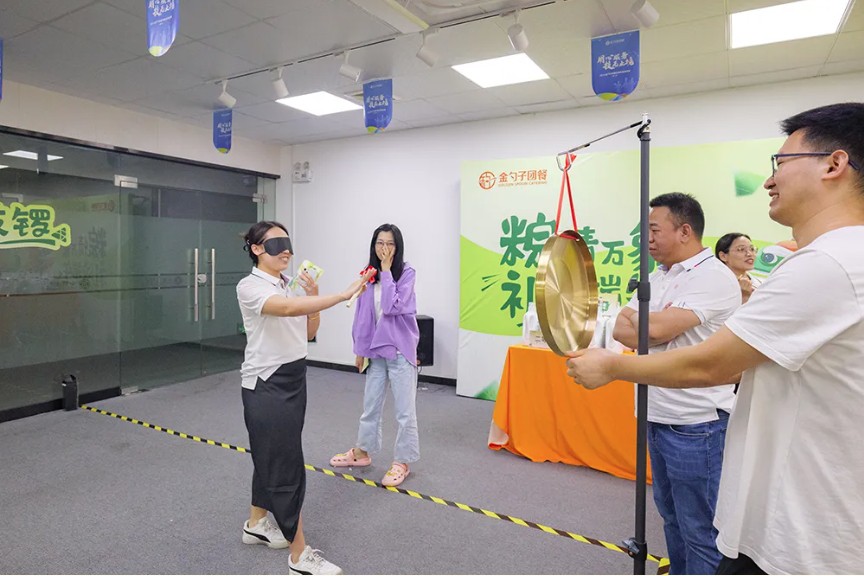 《蒙眼敲鑼》游戲中,參與者需在蒙眼的情況下,憑感覺找到鑼的位置并敲響。這一游戲讓員工們體驗到了信任與默契的重要性。